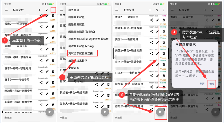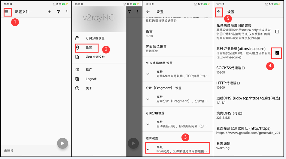 ## 一,下载V2rayNG ## [点击下载V2rayNG](https://app.liulianglm.cc/v2rayNG-new.apk "点击下载V2rayNG")  ## 二,安装成功后打开v2,并设置跳过证书验证 > 打开v2,点击左上角三杠,点击设置,点击进阶设置(高级),点击跳过证书验证(打勾),返回首页  ## 三,扫描二维码导入线路 > 返回v2首页,点击右上角的+号,点击扫描二维码,扫描二维码导入线路  ## 四,测试可用的线路并开启连接